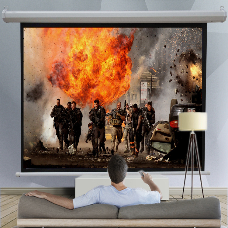 Projection Screen, Motorized, 84″, White Glass Fiber, Remote Control, Size: 1.05mx1.86m